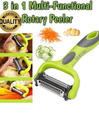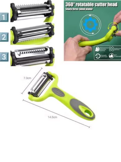 3 in 1 Rotary Multi-Functional Peeler for Vegetables & Fruits | Serrated + Straight + Julienne Blades | Stainless Steel Slicer with Anti-Slip Handle | Kitchen Tool