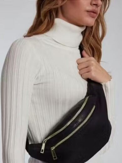 Women's Black Leather Waist Bag