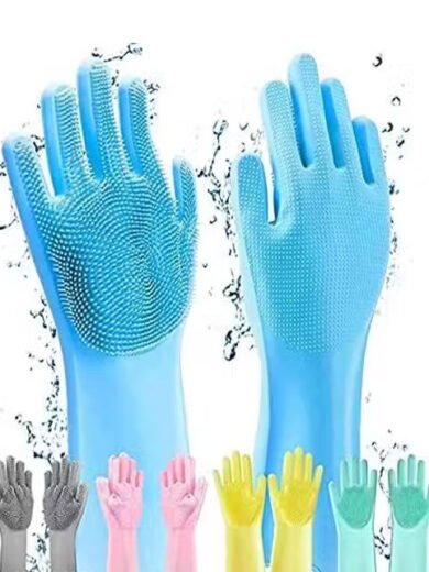 Gloves Magic Silico Dish Washing Gloves, Silico Cleaning Gloves, Silico Hand Gloves for Kitchen Dishwashing and Pet Grooming, Great for Washing Dish, Car, Bathroom (Multicolour, Pack of 1) ( 1 PAIR)