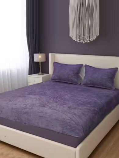 Velvet Bedsheet , Winter Collection Elastic Fitted Woolen Bedsheet With Pillow Covers (Pack of 1) -Fits Up to 8 Inches Mattress