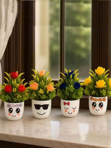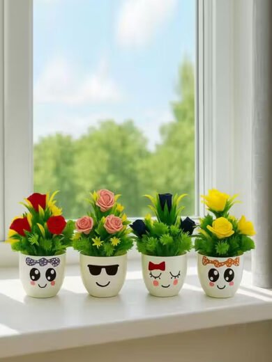 Smiley Pot With Artificial Flower Pot For Home Décor