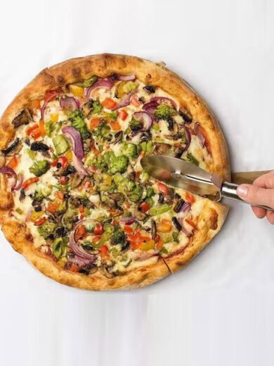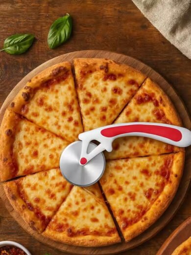 Premium Pizza Cutter-Stainless Steel Pizza Cutter Rocker Slicer Super Sharp Blade Pizza Knife Food Chopper,with Protective Sheath Non Slip Grip Multi Function Kitchen Tools, Dishwasher Safe