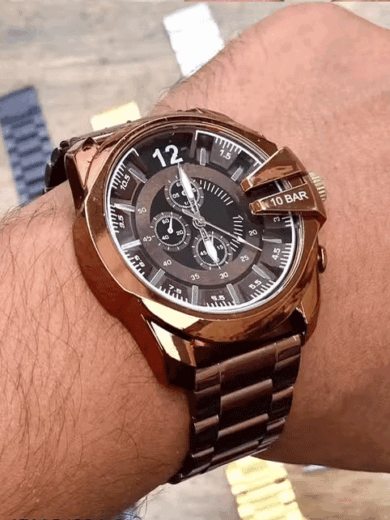 Analog Dial Brown Color Stainless Steel Strap Chrono Design Dial Wrist Watch For Men and Boys
