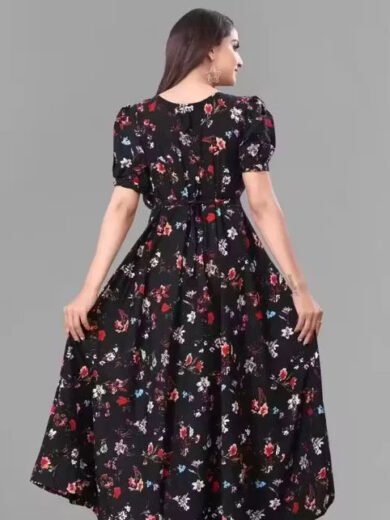 Women Western Wear Floral Print Puffed Sleeve Maxi Dress