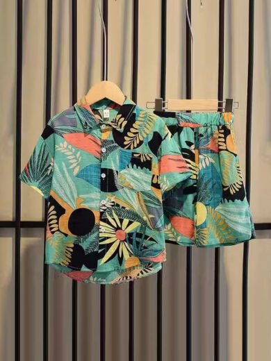 Kids' Printed Cotton Shirt & Shorts Set – Breathable 2-Piece Outfit for Boys & Girls