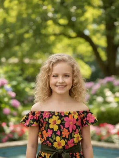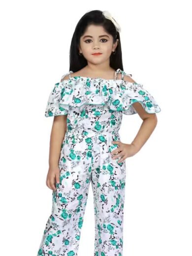 Girls' Floral Off-The-Shoulder Jumpsuit with waist Tie