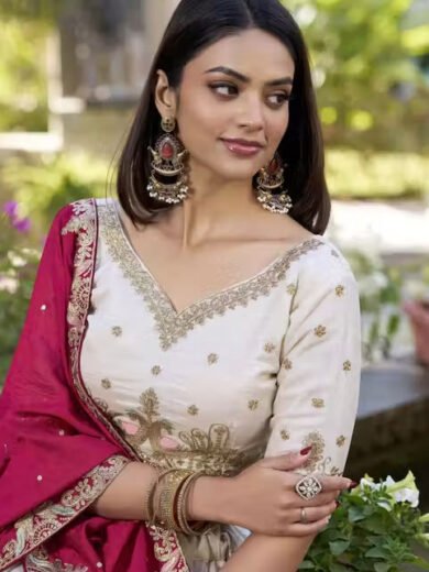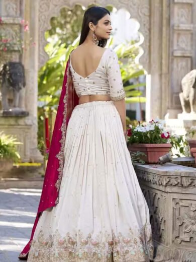 Women's Chinnon Sequins Embroidered Lehenga Choli With Dupatta Set