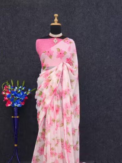 New Arrival Latest Georgette Printed Saree With Running Unstitched Blouse Piece Fancy Women's Designer Georgette Printed Saree New Arrival Latest Saree Trending Saree Bollywood Saree Georgette Ki Sadi