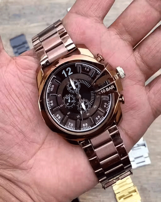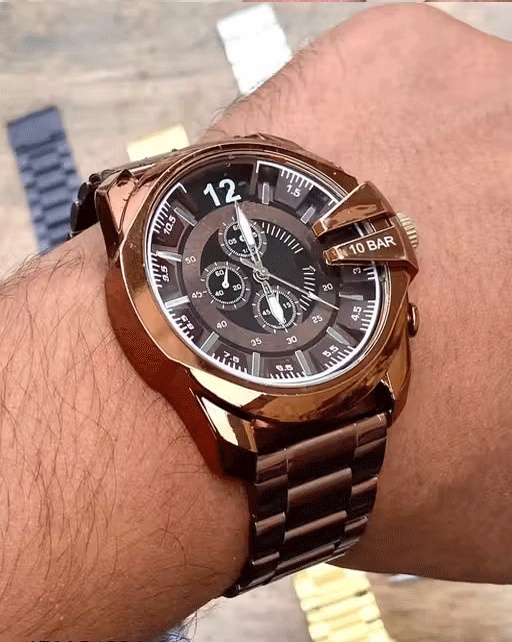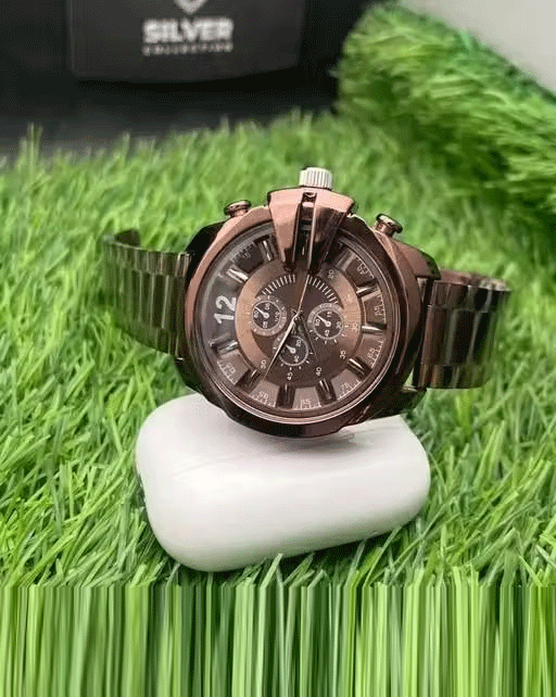Buy it nowName: Analog Dial Brown Color Stainless Steel Strap Chrono Design Dial Wrist Watch For Men and Boys Strap Material: Stainless Steel