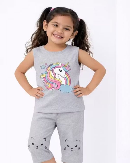 Name: GIRLS UNICORN SLEEVELESS T-SHIRTS & CAPRI SET DRESS P-3