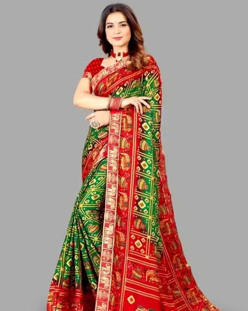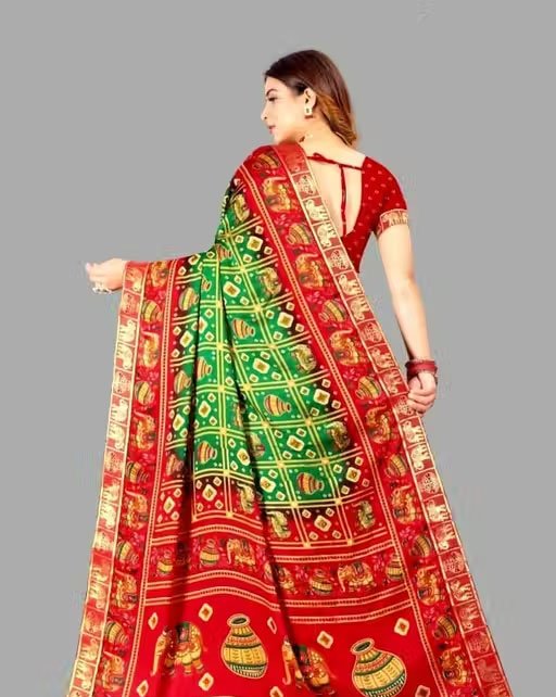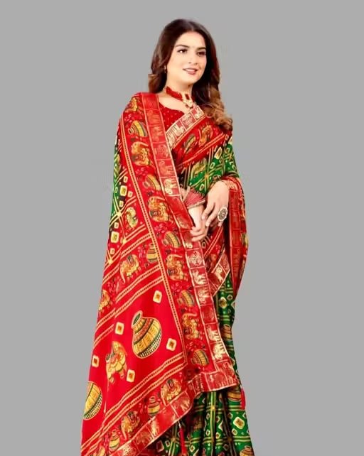 Name: Green Patola Saree (Silk)Tassels and Latkens With Running Blouse