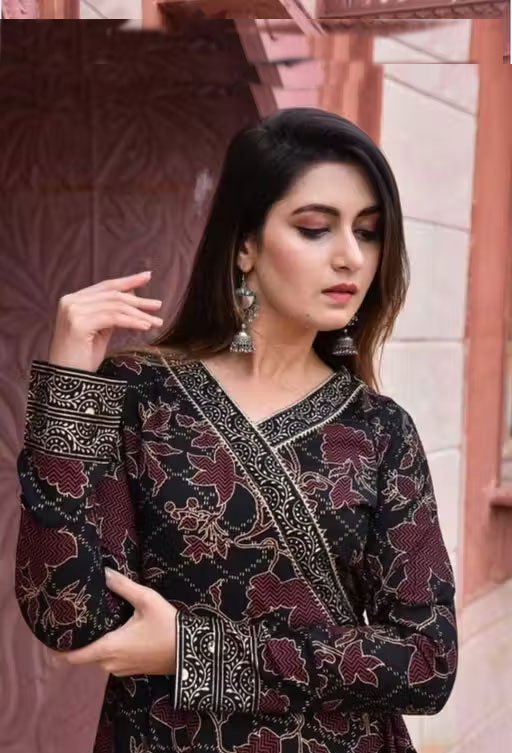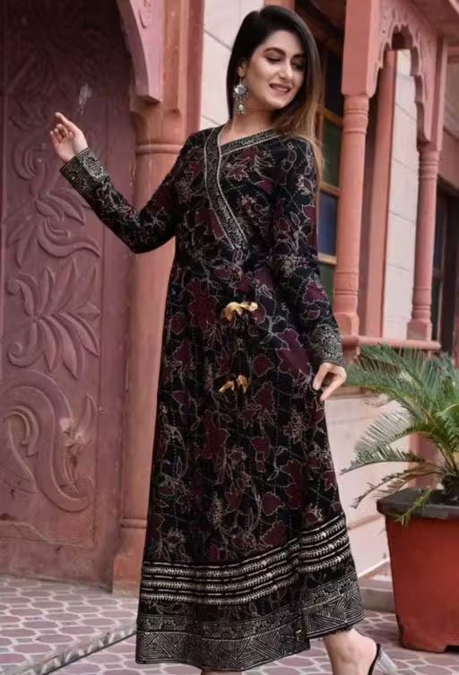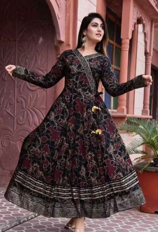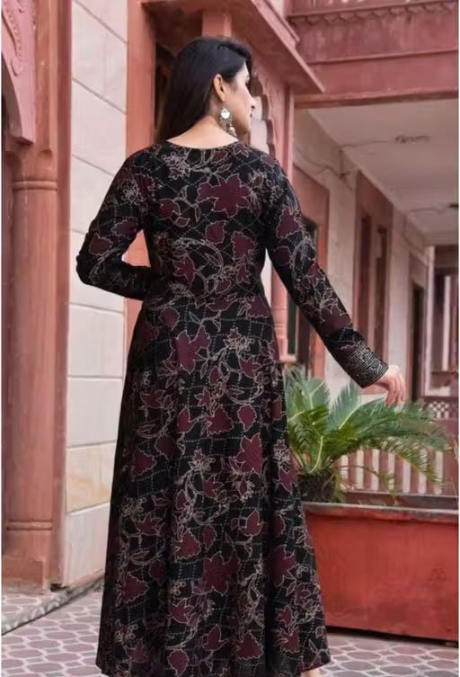 Name: RAYON ANARKALI LONG KURTI BLACK