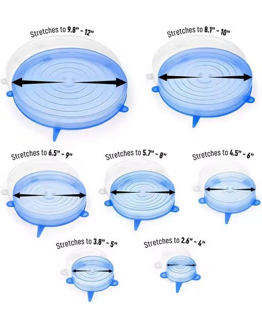• Pack of 6 silicone stretch lids – different sizes for all bowls & containers