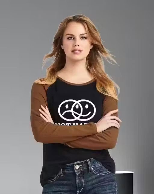 Name: Stylish NO HAPPY NO SAD Printed Women T-Shirt